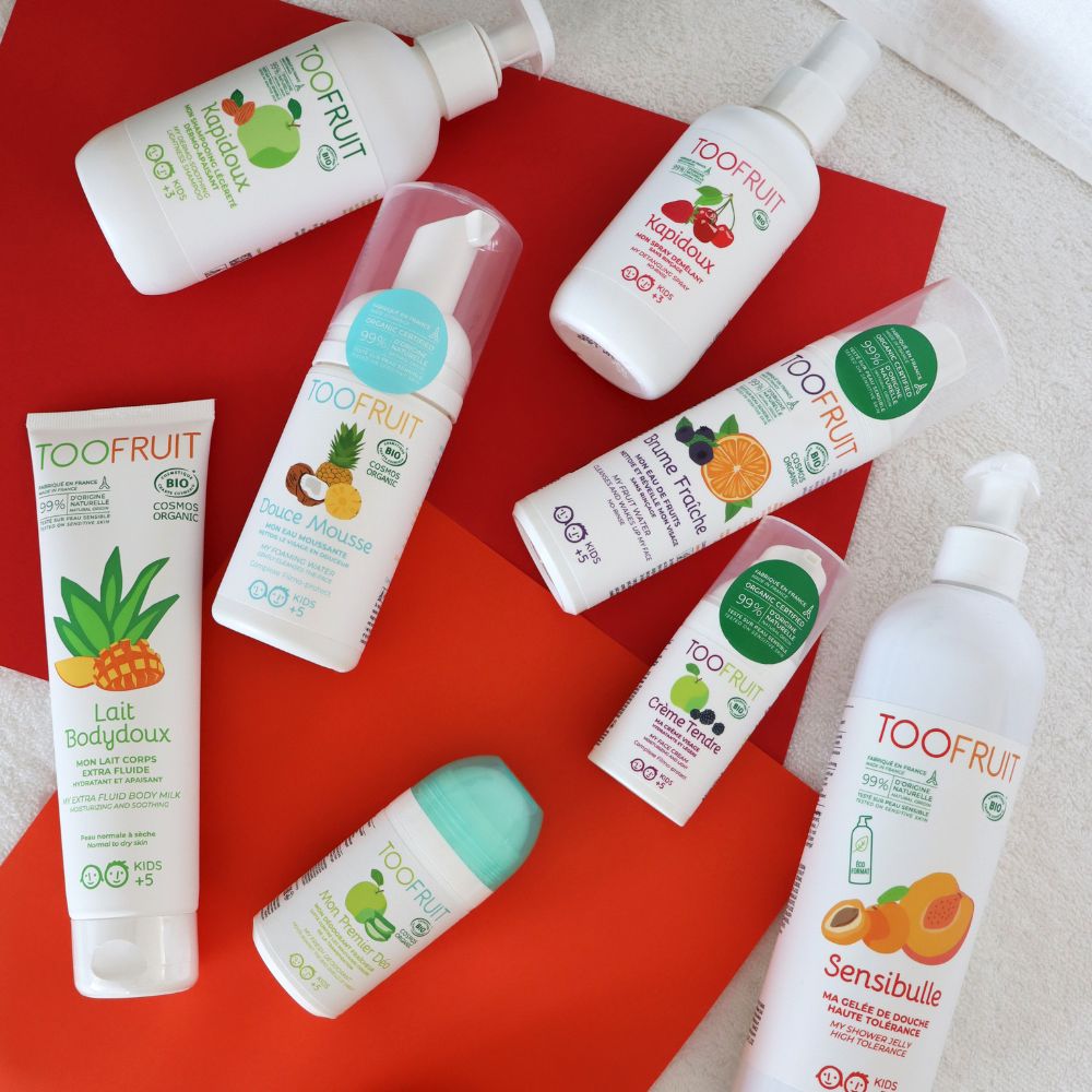 TOOFRUIT est la 1ère marque dermatologique d’hygiène et de soin proposant des produits certifiés bio pour les enfants de 3 à 12 ans. Les produits TOOFRUIT sont formulés avec des ingrédients naturels et biologiques, doux pour la peau des enfants, et sans ingrédients controversés.
