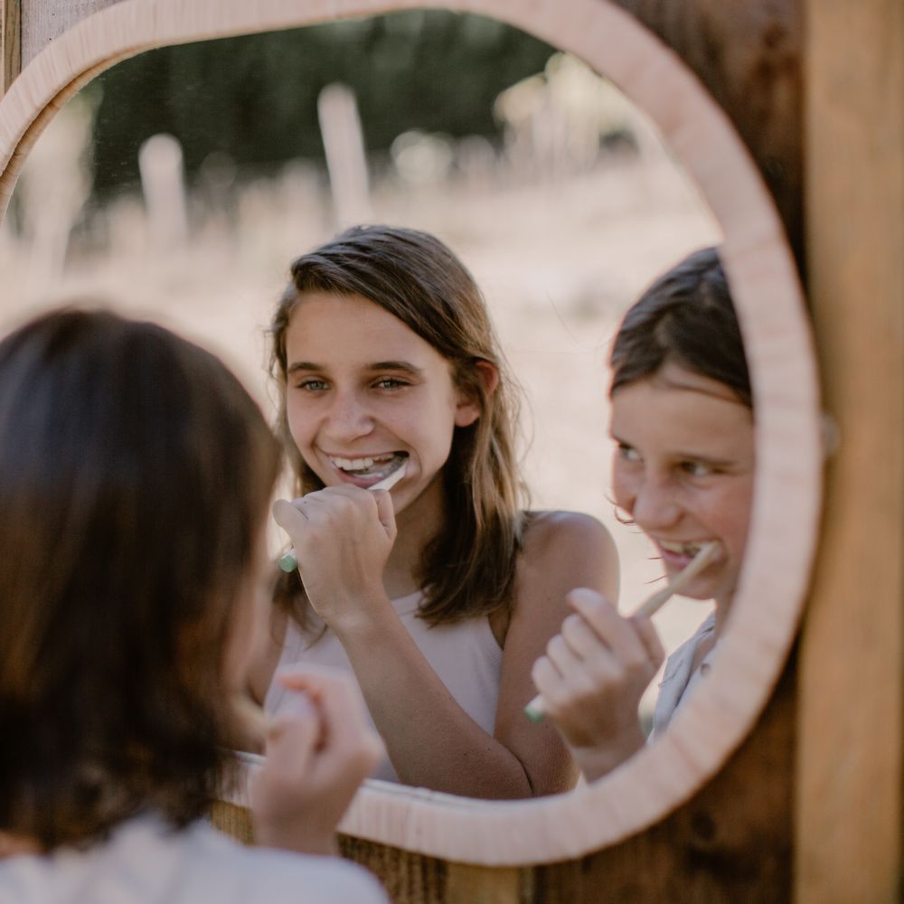 Produit incontournable d’une routine d’hygiène et de soin quotidienne pour petits et grands, le dentifrice a encore plus de superpouvoirs quand il est bio, c’est-à-dire conçu dans le respect de la planète avec des ingrédients majoritairement naturels et sans conservateurs de synthèse. Avec 99,9% d’ingrédients d’origine naturelle, le dentifrice enfant bio TOOFRUIT est quasiment imbattable ! Il se met dans la bouche sans aucun risque et en toute confiance, pour une hygiène bucco-dentaire au top. Les caries, la plaque dentaire et les mauvaises bactéries affectent les dents à tous les âges, d’où l’invention du dentifrice enfant, qui respecte la sensibilité des gencives et des dents des plus jeunes. Avec leur propre tube de dentifrice entre les mains, les enfants apprennent alors à faire comme les grands et à utiliser les bons gestes pour se laver efficacement les dents. Pour avoir toujours les dents propres, il suffit alors de mettre une petite dose de dentifrice de la taille d’un petit pois sur sa brosse à dents, de se brosser les dents pendant environ 2 minutes et de se rincer la bouche à l’eau claire après chaque repas.