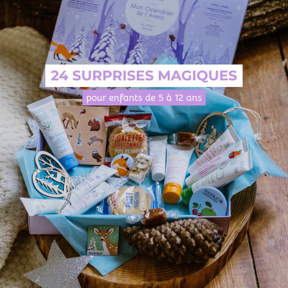 La magie des fêtes se glisse jusque dans les soins pour enfants. Cette année, découvrez notre collection de Noël toute en douceur et en gourmandise : un calendrier de l’Avent plein de surprises fruitées et trois coffrets de Noël féériques, à offrir ou à glisser sous le sapin. Des produits certifiés bio, fabriqués en France et pensés pour chouchouter la peau sensible des petits.