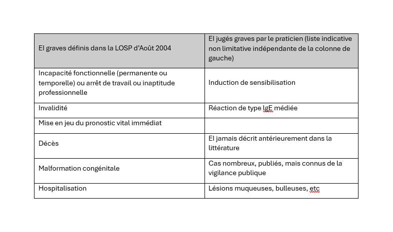 Les effets indésirables (EI) graves par définition, ou jugés graves par le praticien